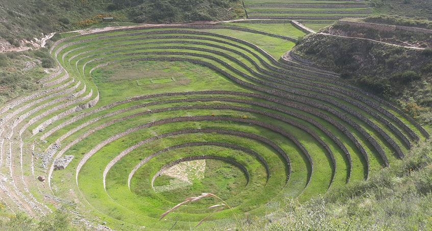 MORAY: Este centro arqueológico es único. Del cual cuentan muchos cronistas y estudiadores que pudo ser un centro de laboratorio e investigaciones agrícola por la disposición de sus terrazas incas circulares, que fueron construidas para generar microclimas reduciendo gradualmente las temperaturas pudiendo diferenciar hasta más de 20 microclimas donde se adaptaron más de 350 diversidades de plantas.